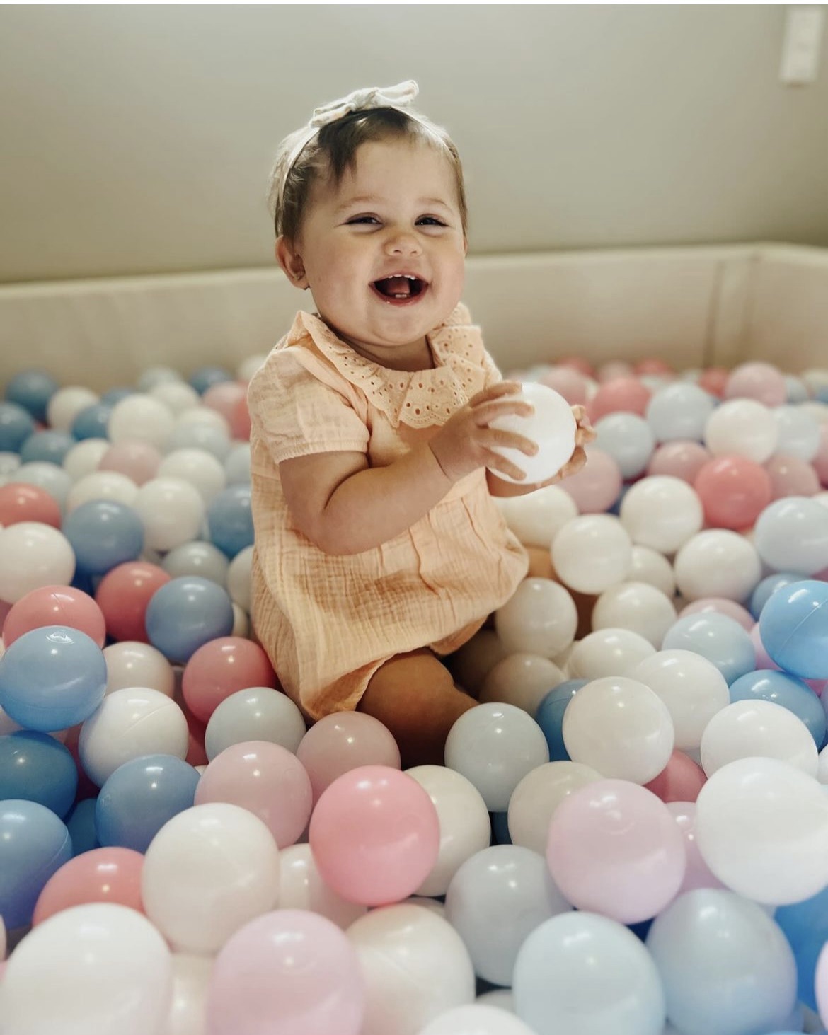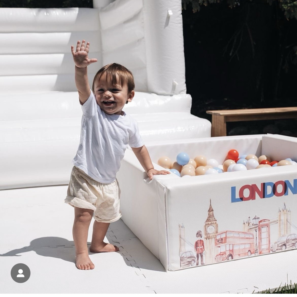 Our smaller soft play set comes in pink, blue or white suitable for ages 0-5. Flooring, rocker, rainbow, ball pit, step and slide and 11 piece castle building blocks.